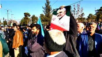 شرکت کنندگان که پرچمهایی از ایران عزیزمان، تصاویری از رهبر معظم انقلاب و «حاج قاسم» را با خود همراه داشتند، ضمن اعلام انزجار از نیروهای دستنشانده آمریکا و محکومیت اغتشاشات اخیر آنان، قدردانی خود را نسبت به نیروهای امنیتی کشور را ثابت کردند.