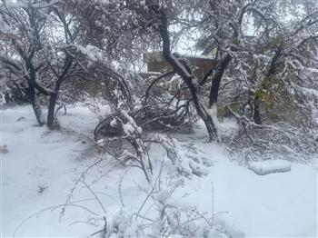 بر اساس مشاهدات میدانی، بسیاری از درختان میوه بهویژه درختان دارای شاخههای گسترده، بر اثر تحمل وزن زیاد برف دچار شکستگی شاخههای اصلی و فرعی شده اند بررسیها چ گزارش های تلفنی نشان میدهد میزان خسارت در باغهایی که پیشتر به آفت کرم خراط آلوده بودهاند، بهمراتب بیشتر بوده است؛ چرا که این آفت با تضعیف بافت داخلی شاخهها و تنه، مقاومت درختان را در برابر فشار و وزن برف به شدت کاهش داده است.